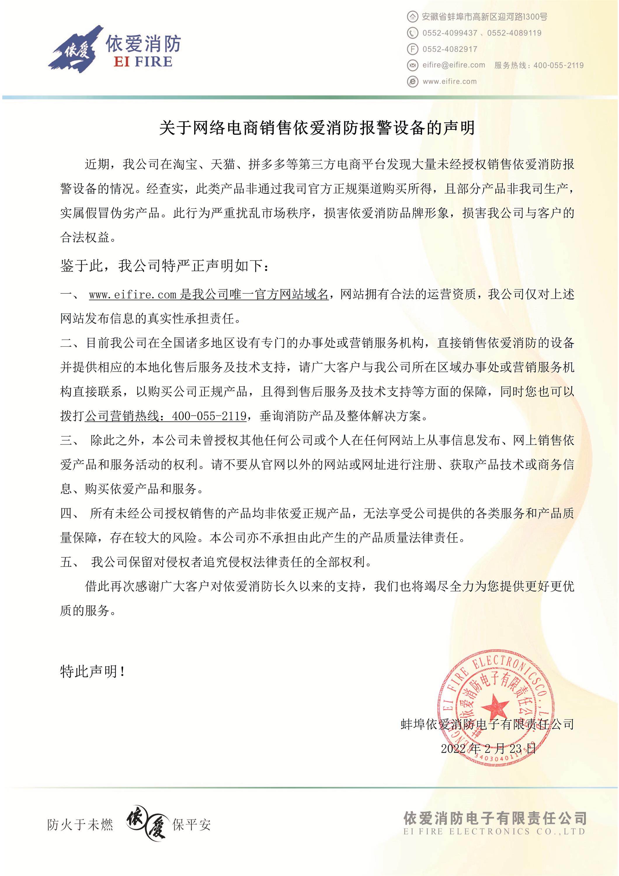 重要通知!關于網絡電商銷售依愛消防報警設備的聲明